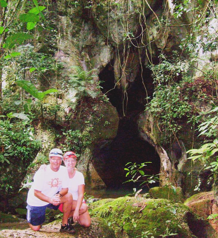 Paula and I at the cavern entrance to Actun Tunichil Muknal