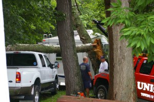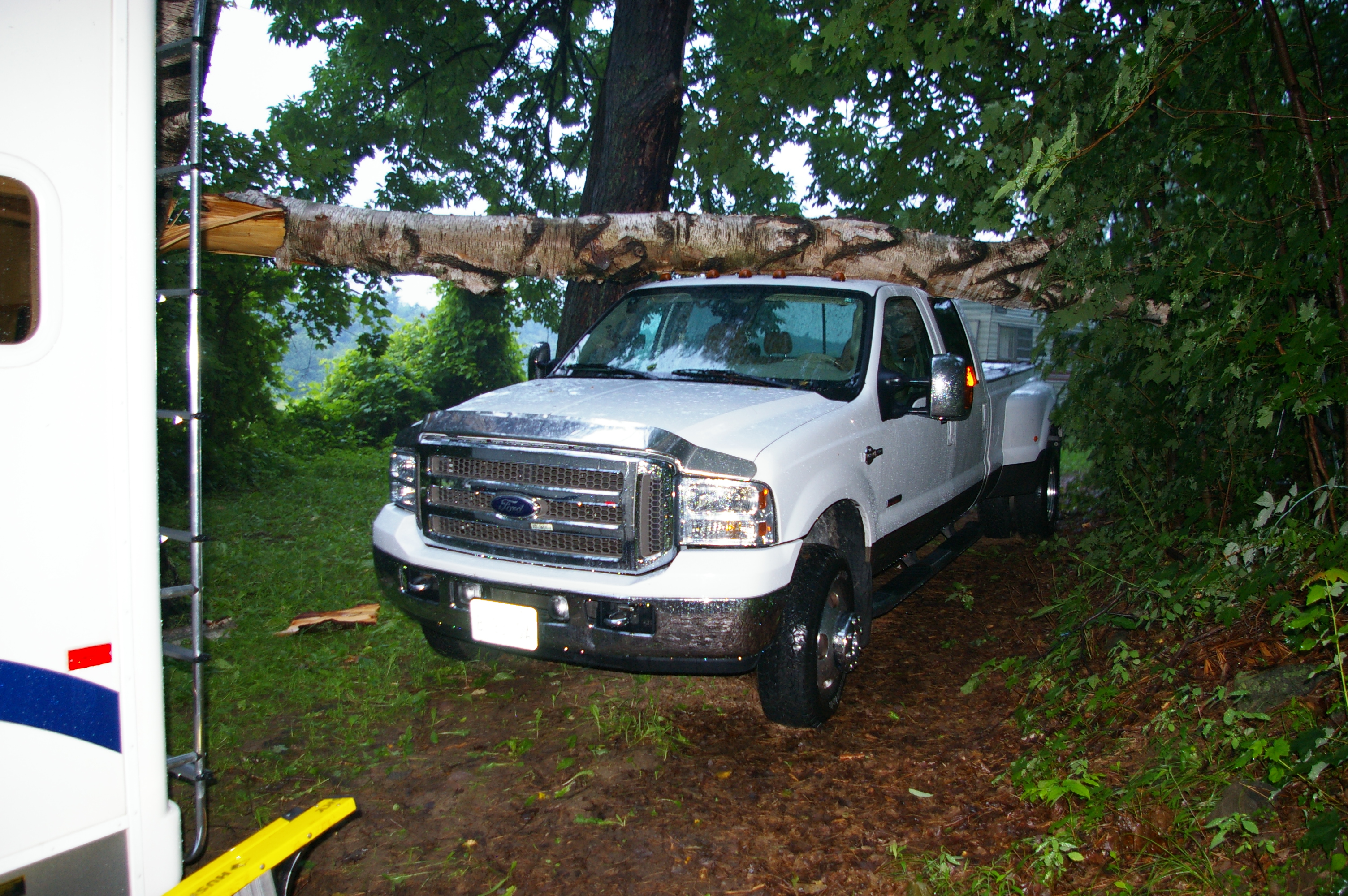 Paula and I quickly got the rain gear and flashlights. For certain our RV had been spared, but flashlights confirmed our truck had not fared so well. A few phone calls followed the next morning and before long we had the truck back on the road and the trailer moved to a my brothers Father-in-Laws till the truck can get fixed, hopefully. Insurance should cover the damage, which is significant, but we are under a time crunch. Tomorrow we hop a flight to Italy and its back to work for me in Albenga, Italy. We can only hope that “Like a good neighbor, State Farm is there” for us, and that this gets handled today. Wish us luck !