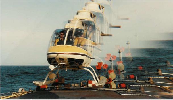 Timing the swell was the critical part to the landing and after completing a few dozen landings I had it figured out. Once on deck it was always a little unnerving sitting on the steel deck as the ship moved side to side,fore and aft,up and down. A sideways swell meant that the helicopter often slid a few inches one way or another. Unless it looked like you might really start start sliding, the all clear for loading was given or a visual thumbs up returned and the always eager to get the hell off the ship passengers scurried head low and got in quickly. Hopefully.